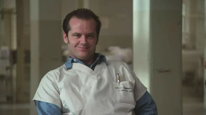 杰克·尼科尔森(Jack Nicholson),在电影《飞越疯人院》中,他把分寸掌握得好,他的动作幅度很大,却没到歇斯底里的地步,粗鲁的言行里有让人看到细腻的感情。尤其是那双细小的眼睛,不时流露出深思、憧憬或绝望的眼色。。